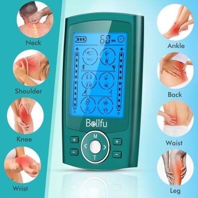 Belifu Dual Channel TENS EMS Unit 24 Modes Muscle Stimulator for Pain Relief Therapy, Electronic Pulse Massager Muscle Massager with 10 Pads